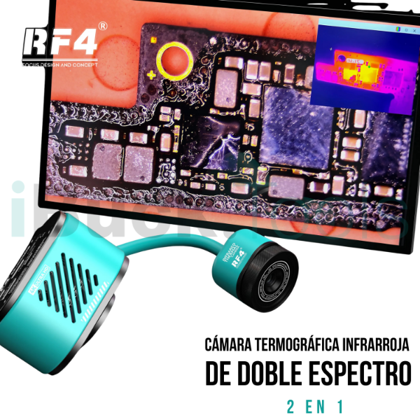 Cámara de microscopio RF4 RF-C39 RF-C39 4K y cámara termográfica infrarroja de doble espectro 2 en 1 para observación de soldadura de placa de circuito impreso y reparación de cortocircuitos en placa base de teléfono. Cámara RF4 RF-C39L mejorada con caballete fijo. Ajuste el ángulo y la dirección a voluntad.